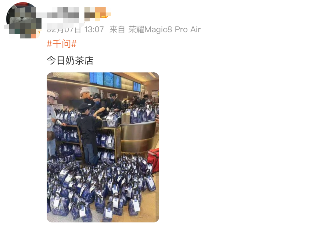 “奶茶狂欢”让千问迅速突围,2月7日登顶苹果App Store免费应用榜,第二名是腾讯旗下的元宝,第三名是字节旗下的豆包。